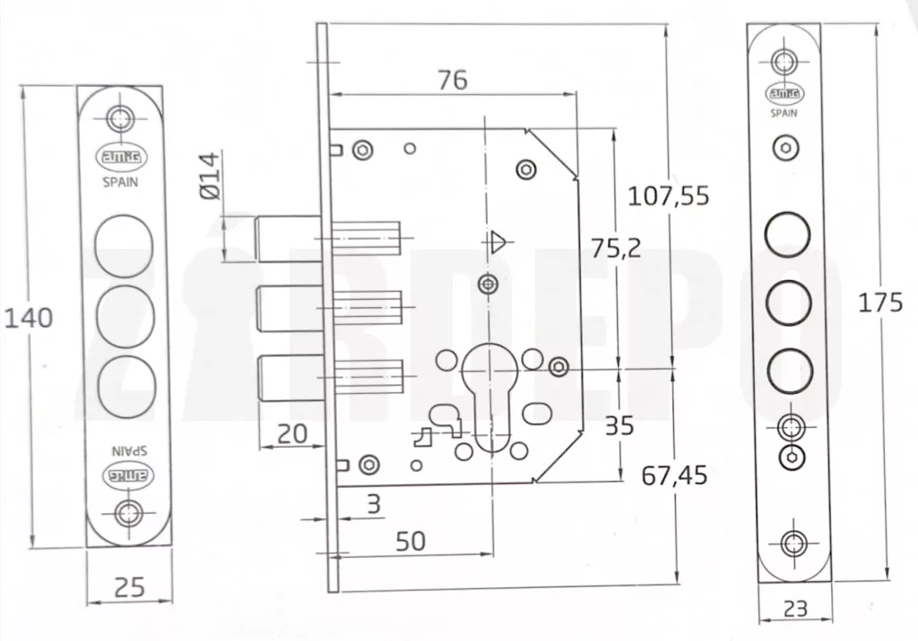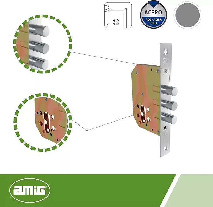 Kulcsközép: 50 mm.Edzett acél test és belső mechanikaDupla reteszelés 3 db 14 mm átmájű retesszel (20 mm elmozdulás)