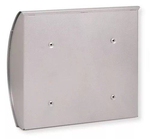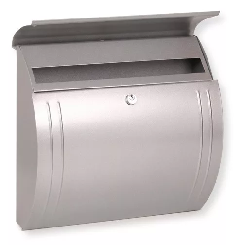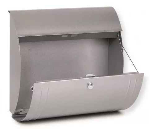 Kapun, kerítésen kívülre felszerelhető horganyzott acél alapanyagú porszórással színezett, modern, igényes megjelenésű postaláda időjárásálló lakk bevonattal, felső, felfelé nyíló bedobónyílással, nyitáshatárolóval ellátott fentről lefelé nyíló ajtóval, nikkelezett 5 csapos zárszerkezettel és 2 db gyári kulccsal. A felszereléshez szükséges csavarokkal és tiplikkel szállítjuk.