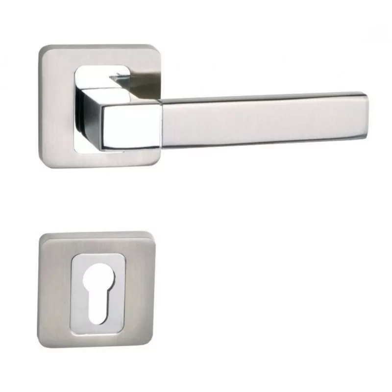 MAESTRO Basic Florida négyzetrozettás ajtókilincs garnitúra (króm-szatén nikkel, cilinderes)
