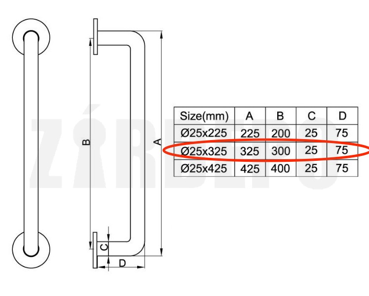 Egyenes ajtófogantyú (INOX, 325x25x75 mm)