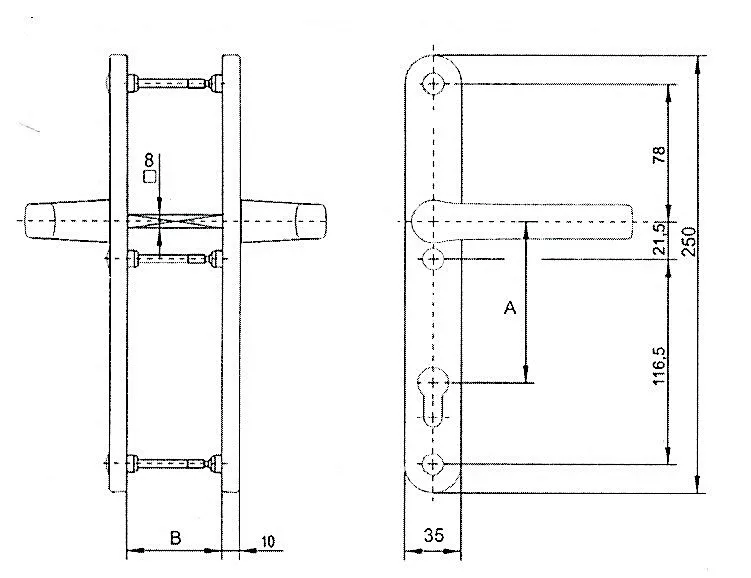 Kilincs - kulcsközép táv