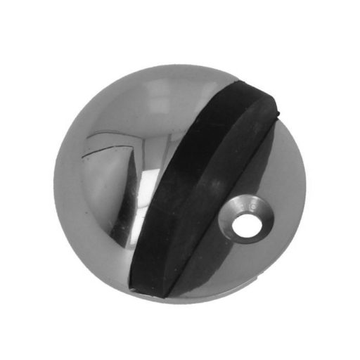 Krómozott, modern, padlóhoz lecsavarozható ajtóütköző rugalmas műanyag ütközés csillapítóval. Lekerített forma, gyerekbarát kivitel.