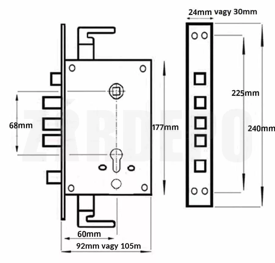 HiSec kínai biztonsági ajtóhoz főzár (24x240 mm-es előlap)