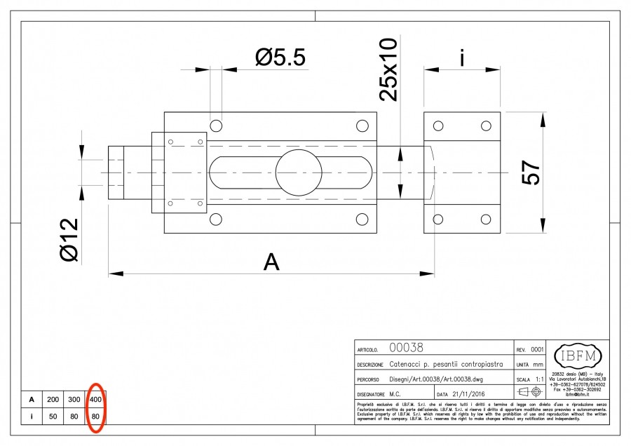 IBFM 38 Lakatolható erősített tolózár 400 mm