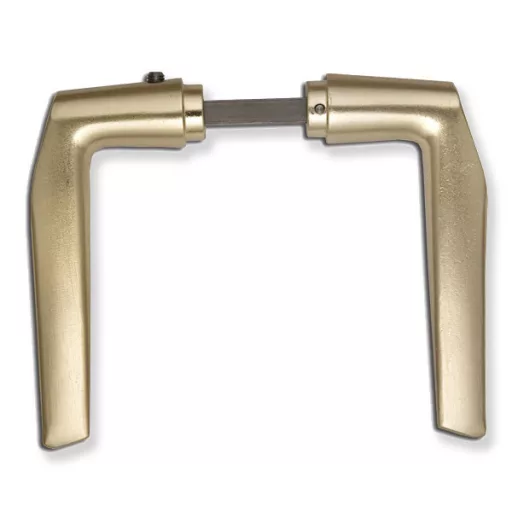 Egyszerű nagyon népszerű ajtókilincs F2 színkódú (pezsgőszín). Kínálatunkban elérhető vele színben azonos ajtócím is.