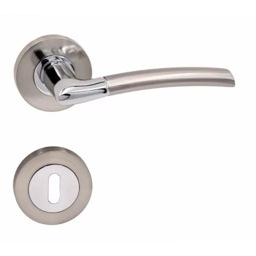MAESTRO Basic Vesta körrozettás ajtókilincs garnitúra (króm-szatén nikkel, kulcslyukas)