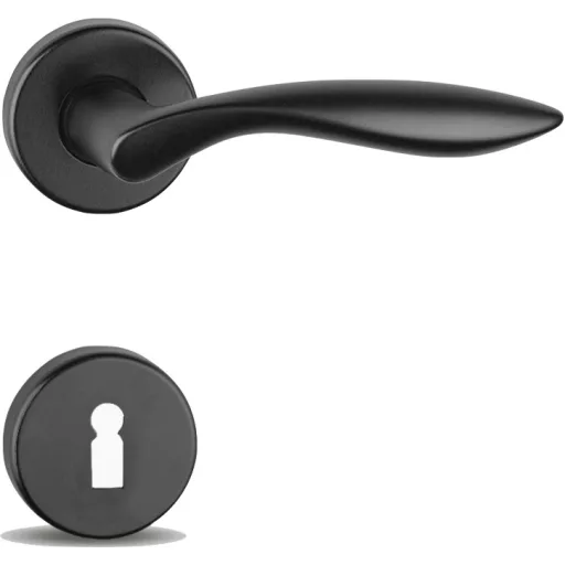 MAESTRO Modern Detroit körrozettás ajtókilincs garnitúra (matt fekete, kulcslyukas)