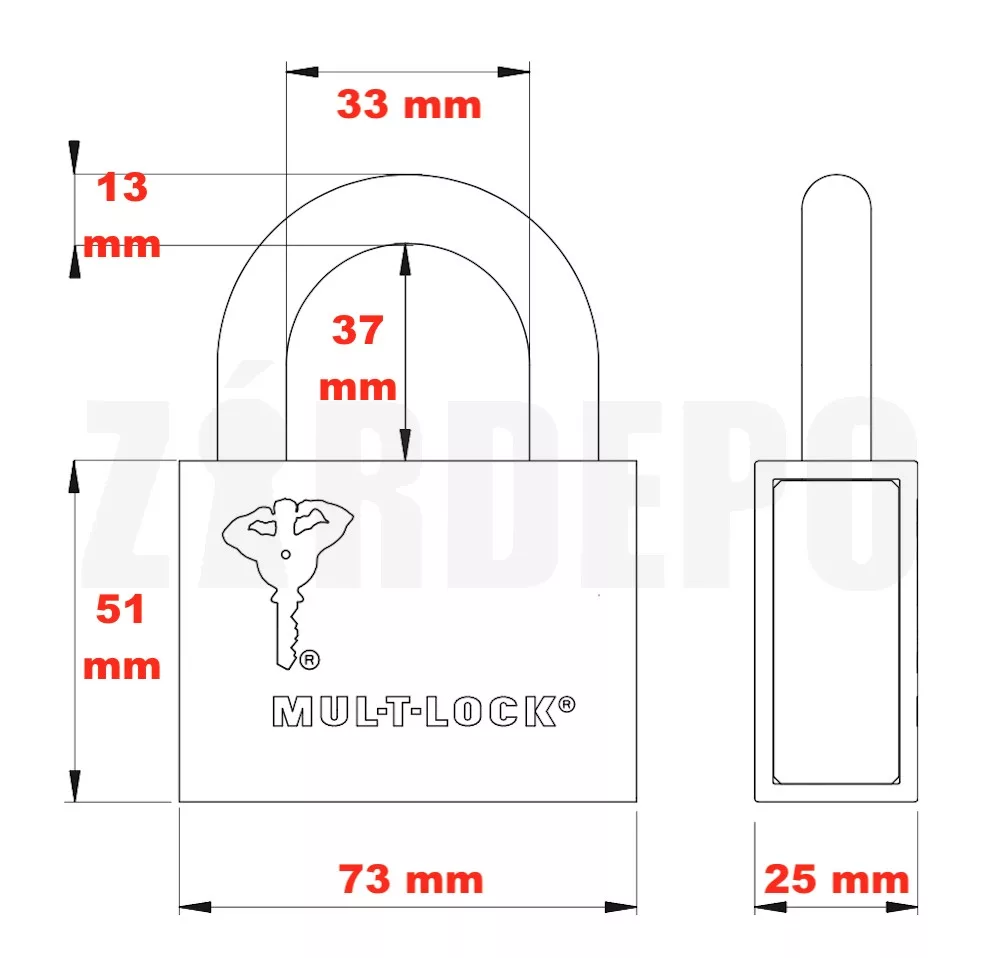 Mul-T-Lock® C-13-es biztonsági lakat edzett bóracél kivehető kengyellel, MTL™600 (Interactive®+) fúrt kulcsos rendszerű zárszerkezettel, fúrás és magkihúzás elleni védelemmel és 3 db gyári kulccsal, kulcsmásolás elleni védelemmel (kulcs csak a biztonsági kártya felmutatásával másolható, vagy utánrendelhető.