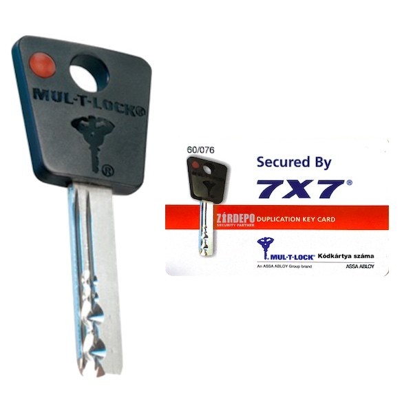 - Kódkártya: pótkulcs az összes kulcs elvesztése esetén is utánrendelhető és további Mul-T-Lock 7x7 Break Secure lakatok és zárbetétek rendelhetőek azonos zárlattal a kódkártya alapján