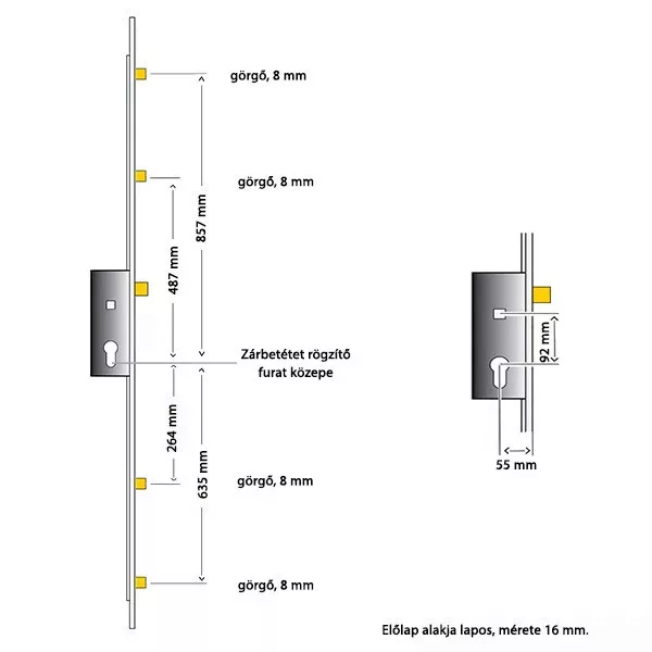 ROTO H600 4E 55/92/16 többpontos zár (kilincsműködtetésű, 4 kis görgős)