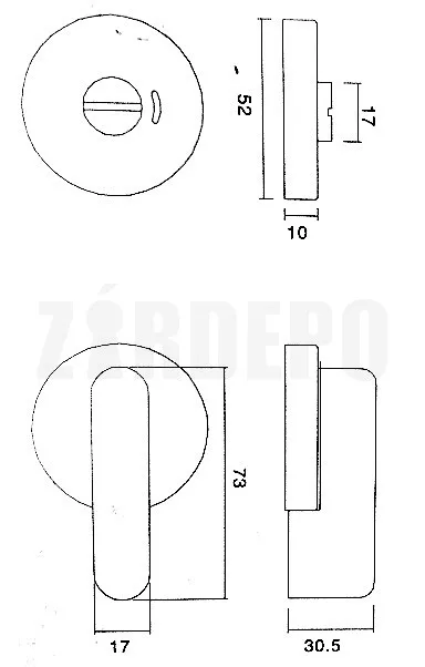 Kimondottan toalett ajtókhoz való ráfordítós zár az előlapon szabad/foglalt kijezővel.