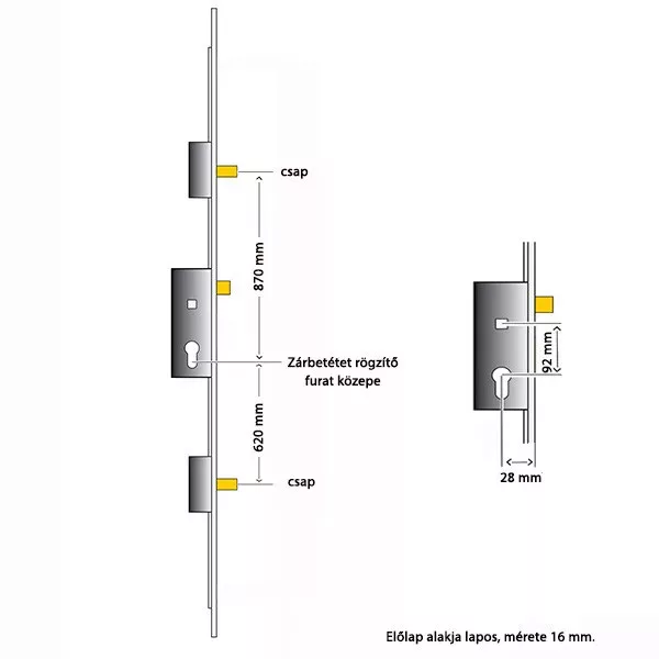 ROTO H600 2 acélcsap (2 CB) 28/92/16 többpontos zár (kilincsműködtetésű, 2 acélcsapos)