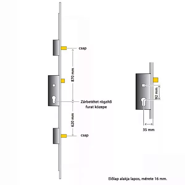 ROTO H600 2 acélcsap (2 CB) 35/92/16 többpontos zár (kilincsműködtetésű, 2 acélcsapos)
