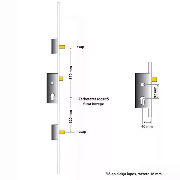ROTO H600 2 acélcsap (2 CB) 40/92/16 többpontos zár (kilincsműködtetésű, 2 acélcsapos)