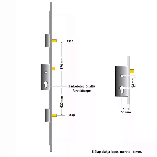 ROTO H600 2 acélcsap (2 CB) 55/92/16 többpontos zár (kilincsműködtetésű, 2 acélcsapos)