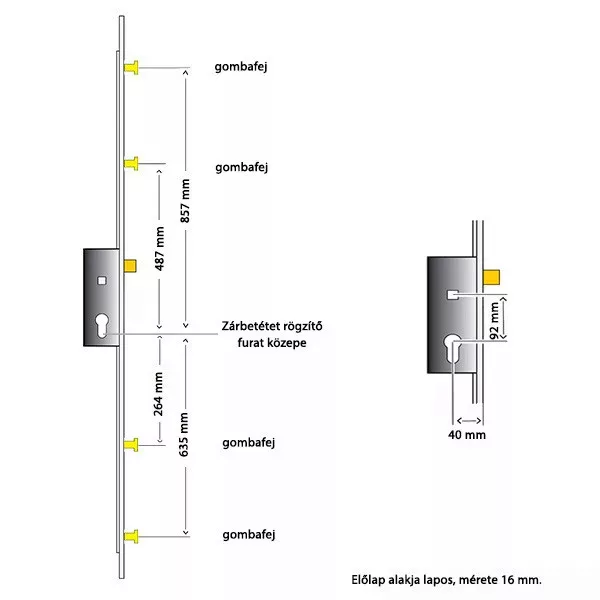ROTO H600 4V 40/92/16 többpontos zár (kilincsműködtetésű, gombafejes)