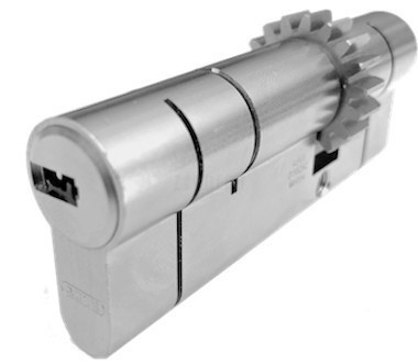 Gombos változat: a belső oldalról a nyitás és a zárás egy fordítógombbal történik kulcs helyett, ezáltal a használatuk sokkal kényelmesebb (a kulcs felöli oldalon 60 mm-nél hosszabb ABUS D6PS zárbetétek nem szerelhetők gombos változatúra)