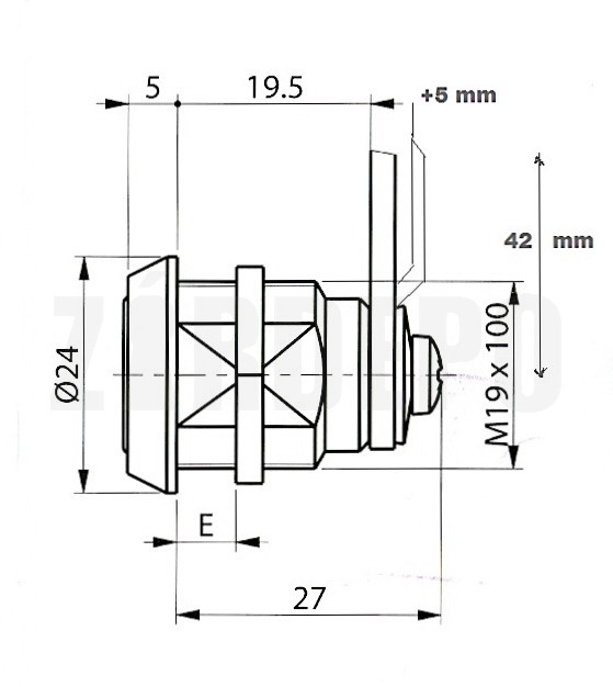 A nyelv hossza: 42 mm (tengelyközéptől számítva)