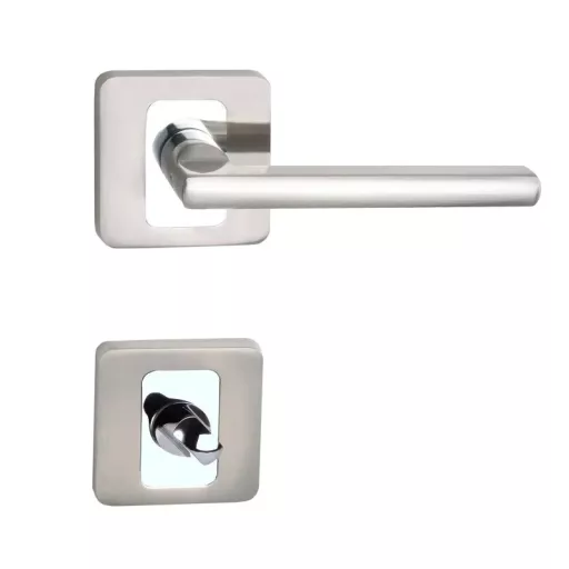 MAESTRO Basic Daniela négyzetrozettás ajtókilincs garnitúra (króm-szatén nikkel, toalett)