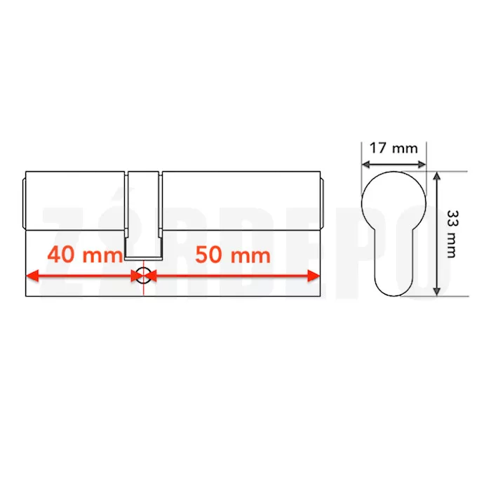 A zárbetét  mérete az ábrán jelölt A és B oldalak hossza mm-ben meghatározva, pl. egy 30/40-es zárbetétnél az A oldal 30 mm a, B oldal pedig 40 mm. A zárbetét hosszát az oldalán található menetes furat (rögzítő csavar helye) közepétől a zárbetét széléig kell mérni. A nem szimetrikus méreteknél az A oldal minden esetben a rövidebb oldalt jelöli, de természetesen minden zárbetét megfordítva is beszerelhető, tehát mindegy, hogy az A vagy B oldal az ajtó melyik oldalára kerül.